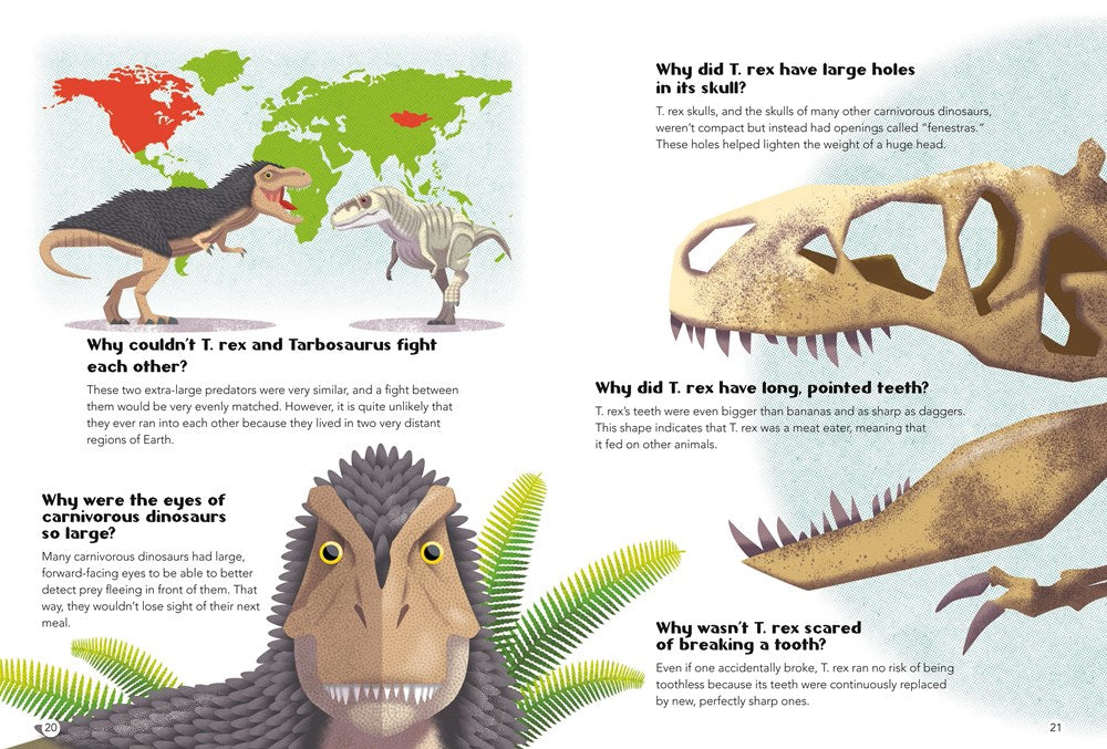 Why were T-Rex’s arms so short? Why were some dinosaurs covered in feathers? Why did Diplodocus have pencil-shaped teeth? Answers to 200 of the most-asked dinosaur-related questions can be found in the pages of this amazing and engaging book. It includes stimulating information for avid learners on fearsome carnivores and huge herbivores, exciting archaeological discoveries, and more!