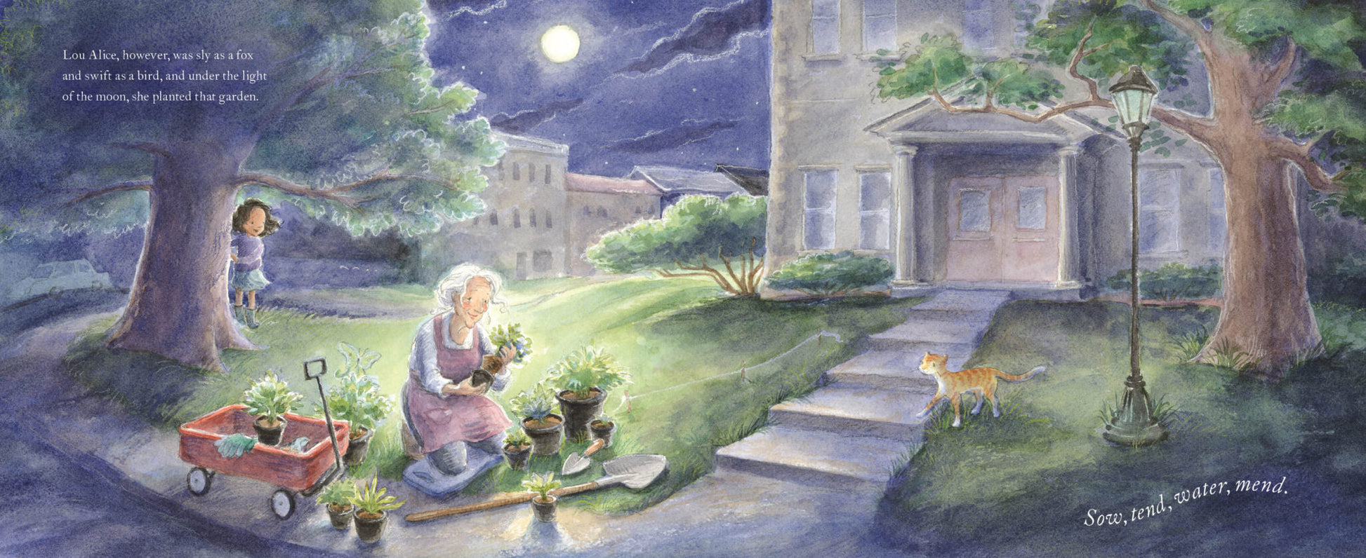 Sly as a fox and swift as a bird, Lou Alice is determined to leave each day a little more beautiful than she found it. But when she moves away from her little house, no one in town notices she's gone. No one, that is, except a little girl, who sets out to carry on Lou Alice's work. But doing so is not enough.