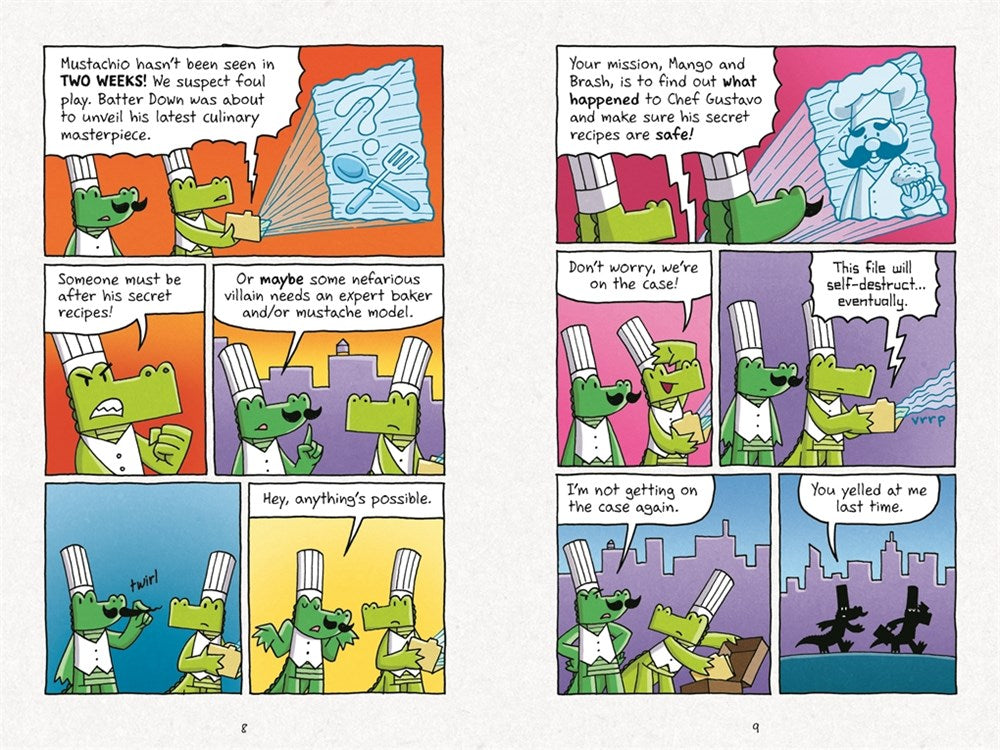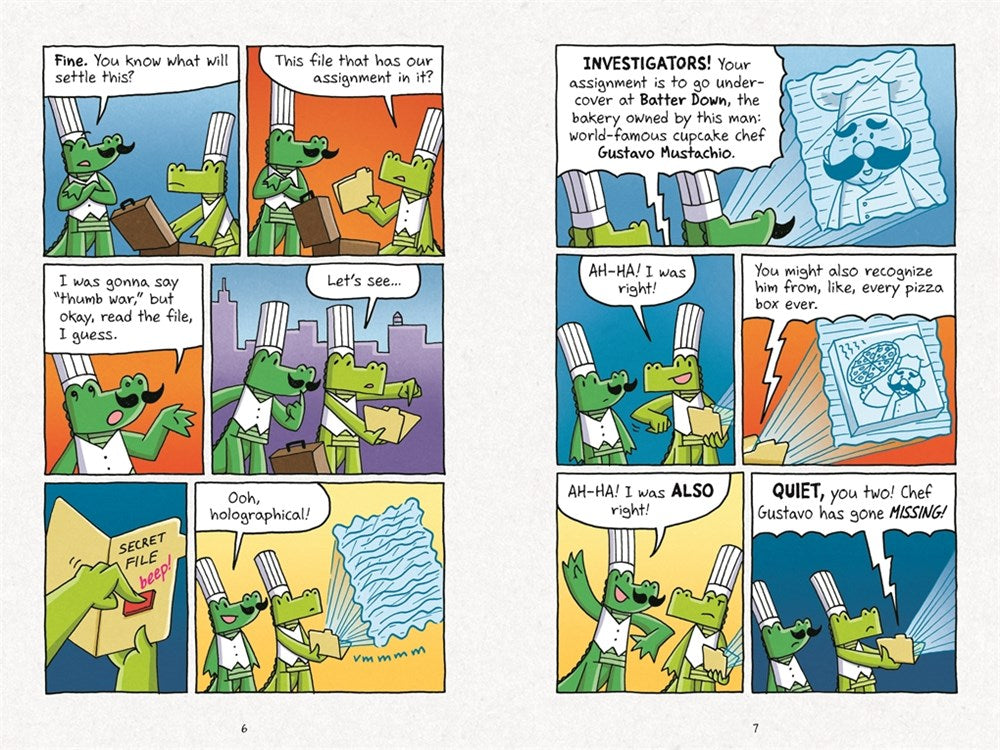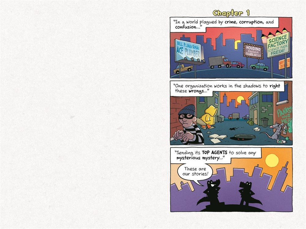 With their Very Exciting Spy Technology and their tried-and-true, toilet-based travel techniques, the InvestiGators are undercover and on the case! And on their first mission together, they have not one but two mysteries to solve! Can Mango and Brash uncover the clues, crack their cases, and corral the crooks―or will the criminals wriggle out of their grasp?