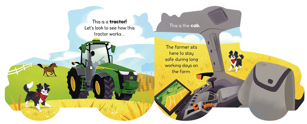 - Shaped board book: Tractor shaped board book with sturdy, thick pages that are perfectly sized for little hands and fingers to turn the pages and read along.