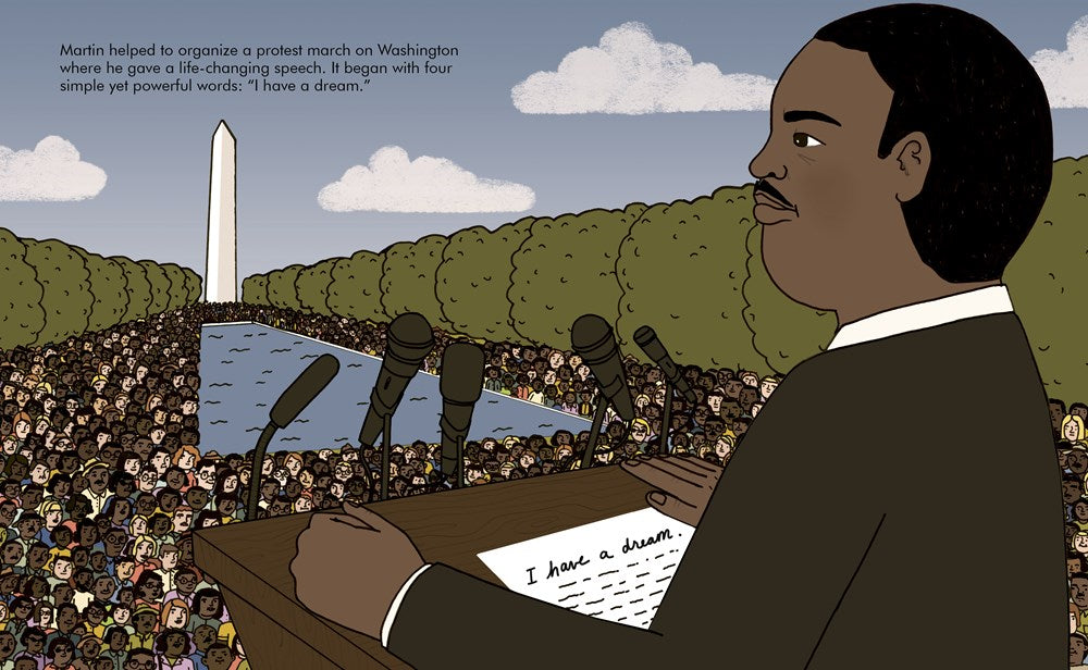 Little Martin grew up in a family of preachers: his dad was a preacher, his uncle was a preacher, his grandfather was a preacher…so maybe he’d become a great preacher too. One day, a friend invited him to play at his house. Martin was shocked when his mother wouldn’t let him in because he was black. That day he realized there was something terribly unfair going on. Martin believed that no one should remain silent and accept something if it's wrong. And he promised himself that—when he grew up—he’d fight injustice with the most powerful weapon of all: words. This moving book features stylish and quirky illustrations and extra facts at the back, including a biographical timeline with historical photos and a detailed profile of the inspiring activist’s life.
