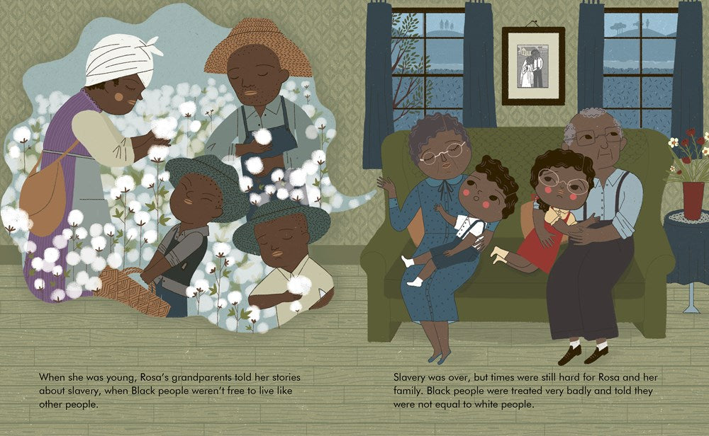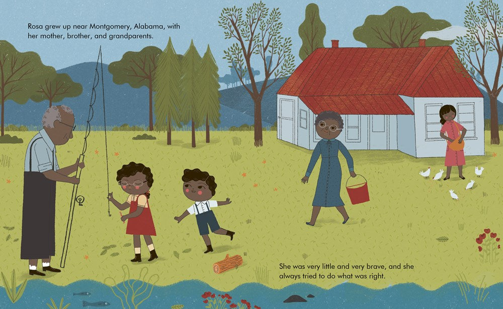 Rosa Parks grew up in Alabama, where she learned to stand up for herself at an early age. Rosa went on to become a civil rights activist. In 1955, she refused to give up her seat to a white man on a segregated bus, sparking the Montgomery Bus Boycott. Her courageous decision had a huge impact on civil rights, eventually leading to the end of segregation on public transport. She never stopped working for equal rights. This moving book features stylish and quirky illustrations and extra facts at the back, including a biographical timeline with historical photos and a detailed profile of the activist's life.
