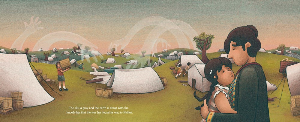 "In this poignant yet child-appropriate perspective on warfare, Ghanameh’s hand-drawn illustrations full of green landscape and white tents bring to life the refugee experience. [...] A sorrowful tale of the impact of warfare, infused with hope."—Kirkus Reviews